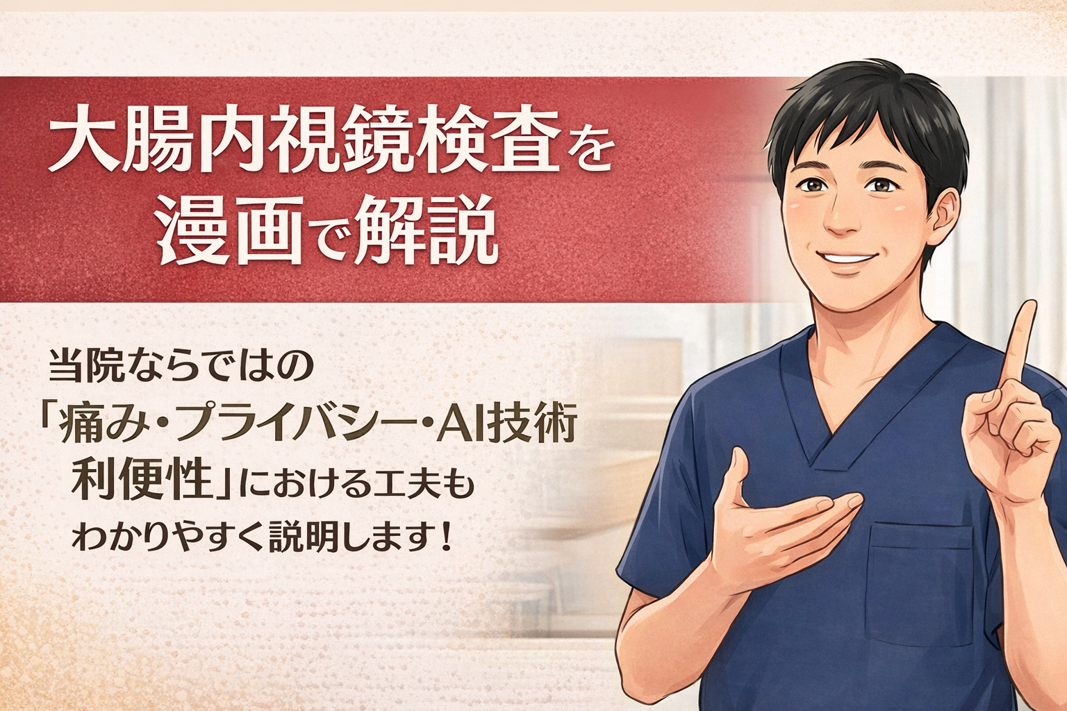 こんにちは、辻仲つくば胃と大腸内視鏡・肛門外科院長の森田です。本院は消化器科・肛門科の専門病院である辻仲病院グループに所属するクリニックです。