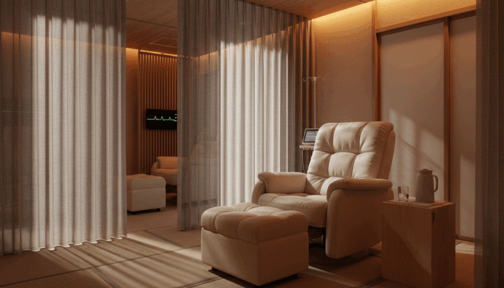半分眠ったようなぼんやりとした状態で、リラックスしたまま検査を受けられます。また、検査後は専門のリカバリールームでしっかりと休んでからお帰りいただけます。当院では作用時間が短く、患者さんの負担の少ない鎮静剤を使用しております。