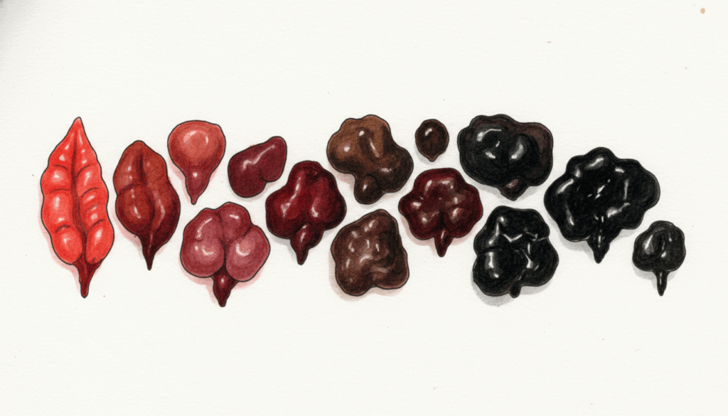 黒っぽい赤色の便は、大腸や小腸など比較的上部の消化管からの出血を示します。
