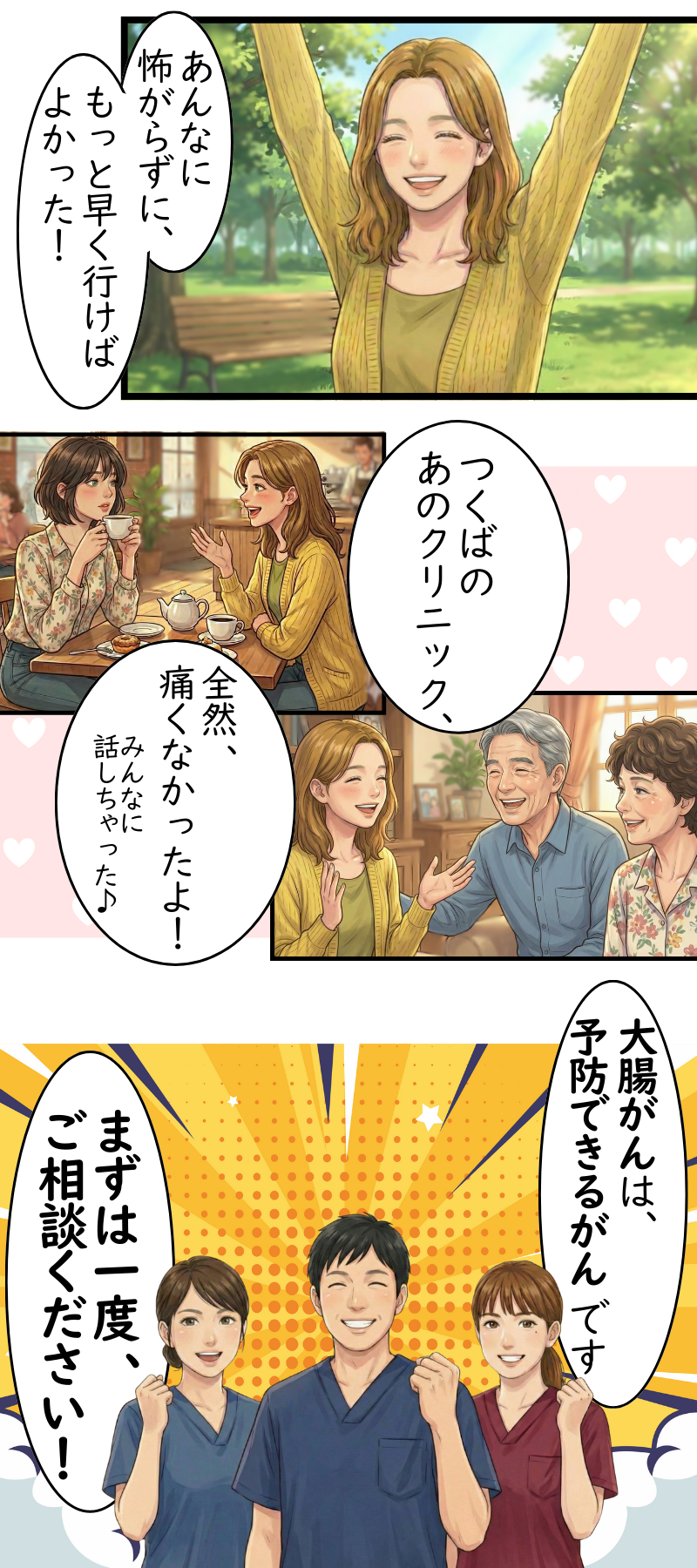 【漫画】大腸内視鏡検査の受け方 つくばの専門医解説|辻仲つくば胃と大腸内視鏡・肛門外科クリニック|茨城県つくば市の大腸・肛門外科 消化器内科 内視鏡検査